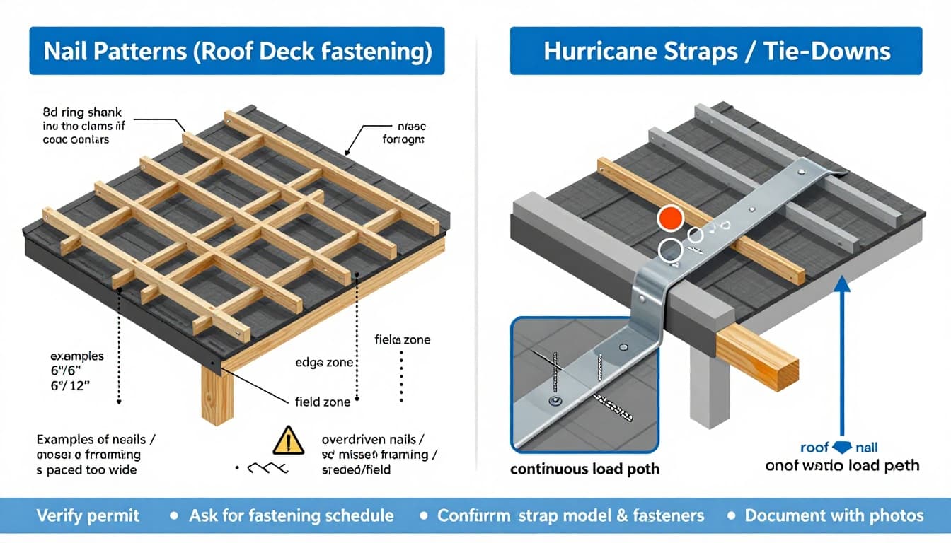For homeowners, the key is simple: don’t focus only on the visible roof material. Ask how the deck and connections are being fastened, and how it matches the approved plans.